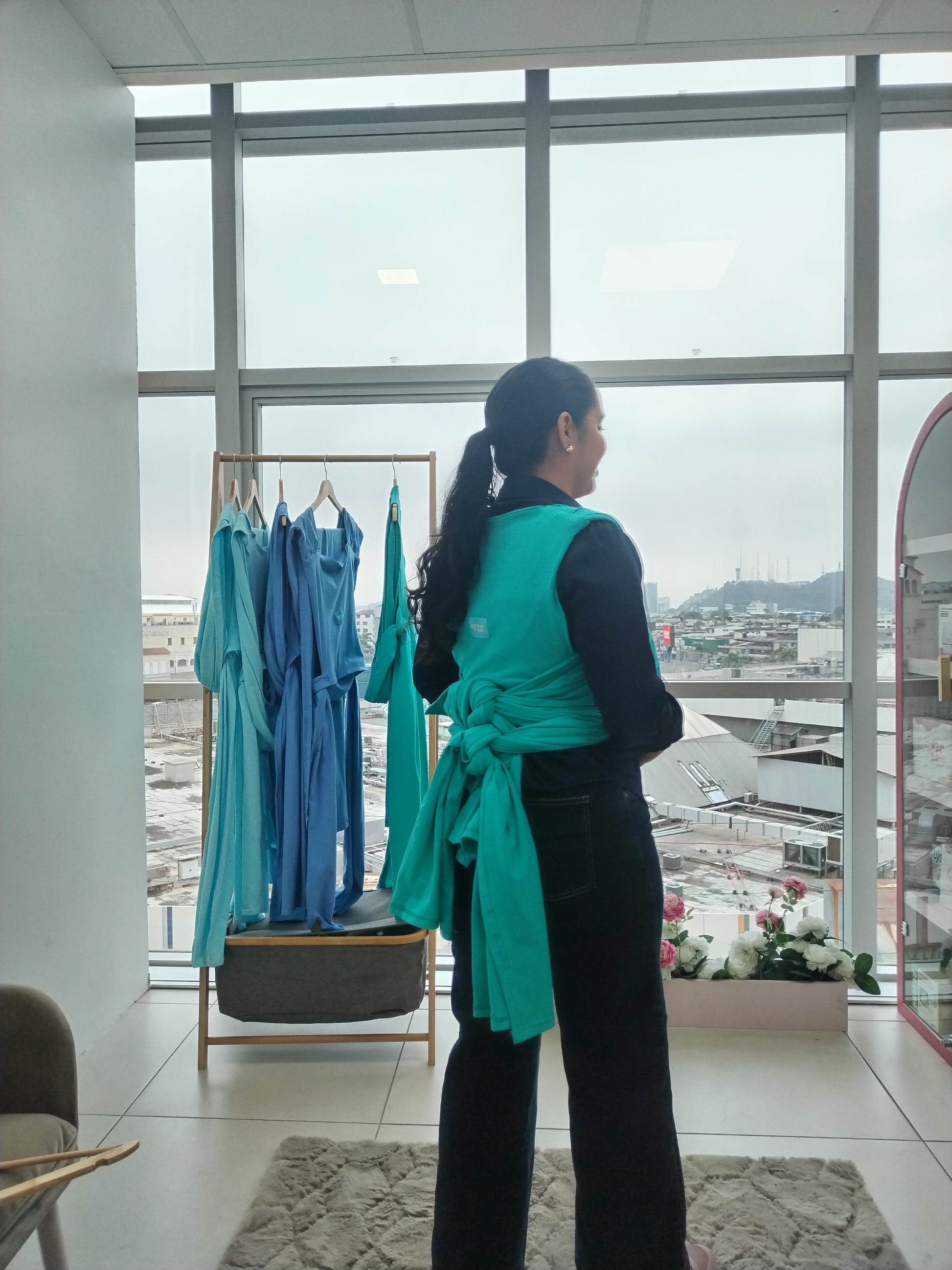 Mezcla de fular elástico y prearmado, perfecto para iniciar ese contacto con tu bebé. Talla queda perfecta para mamá y papá.